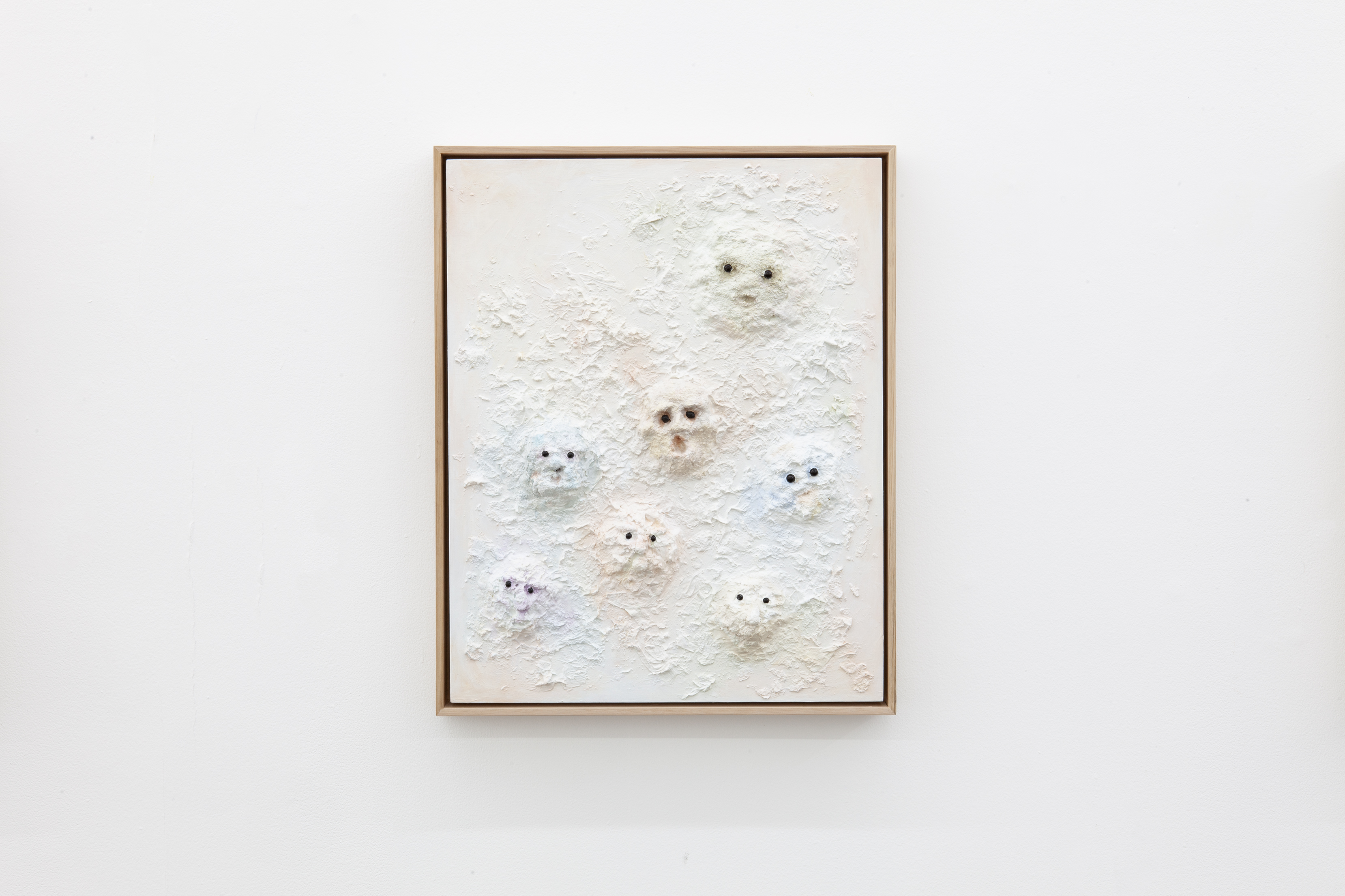 One by One 2025 Oil, cellulose, adhesive, desiccant, beads on wood panel